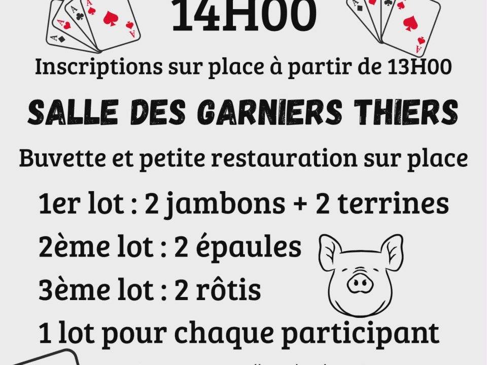 Le dimanche 8 Février, l'école des Garniers organise un concours de belote. - 14H00 –…