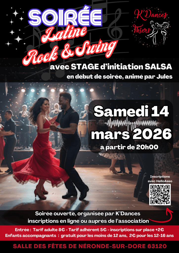 Soirée Latine, Rock & Swing organisé par K’Dances L’association K’Dances de Thiers vous donne rendez-vous…