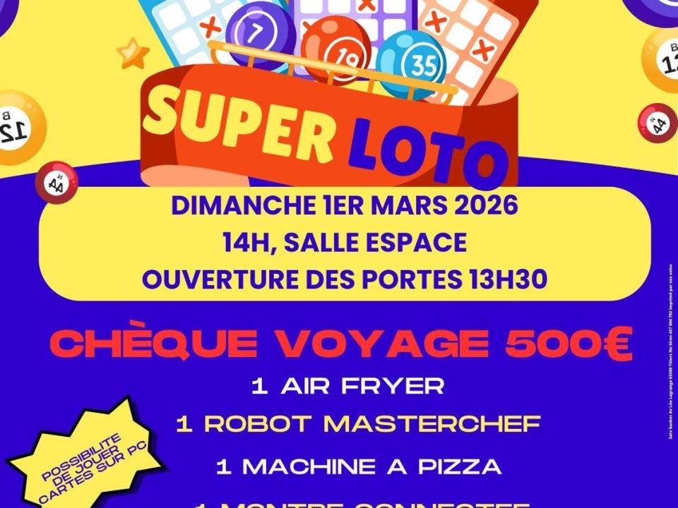 Loto école Emile Zola avec de nombreux lots le dimanche 8 février 2026 à partir…