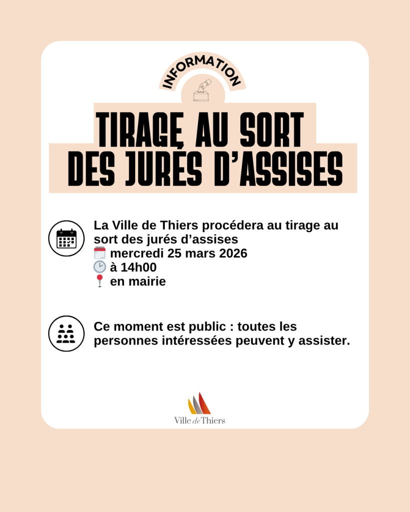 La Ville de Thiers procédera au tirage au sort des jurés d’assises mercredi 25 mars…