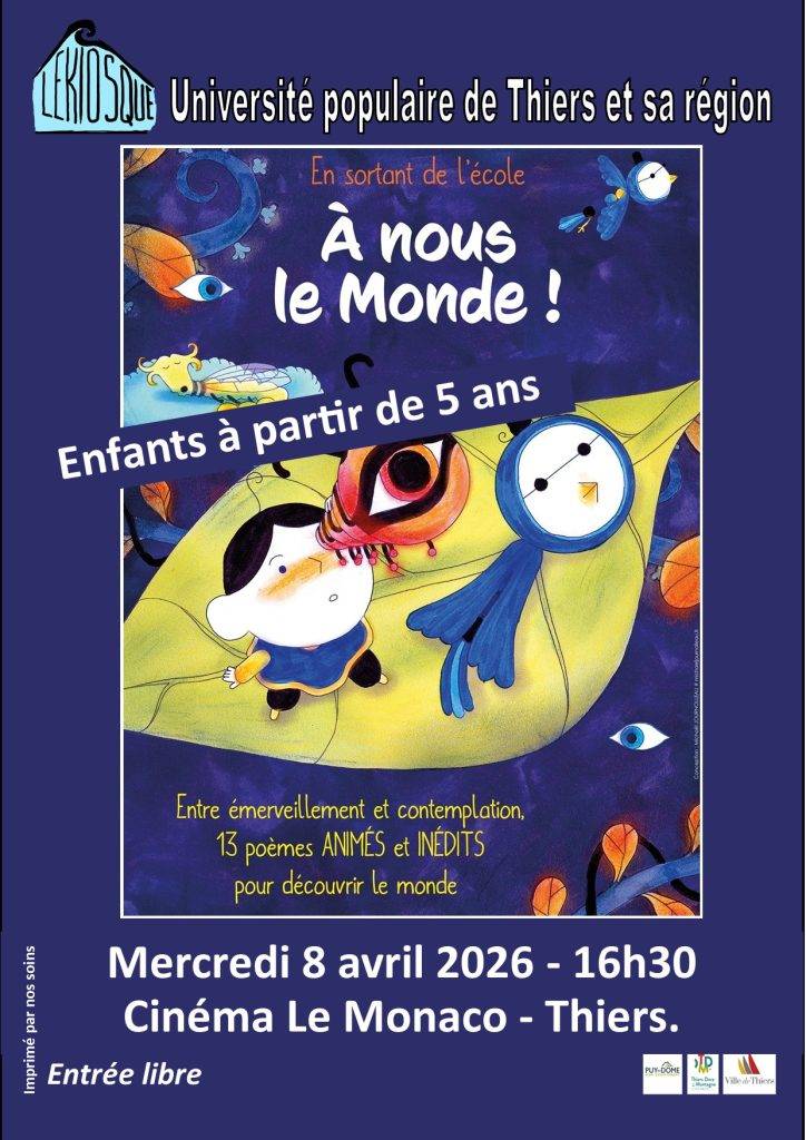 Le Kiosque, Université Populaire de Thiers et sa Région vous propose une séance spéciale .…
