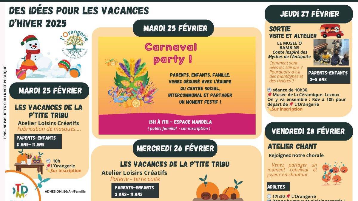 L’Orangerie, le Centre Social de l’Interco, vous dévoile son programme d’animations pour les vacances d’hiver.