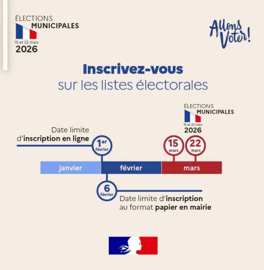 Les 15 et 22 mars 2026, vous allez vous rendre aux urnes pour élire les conseillers municipaux et communautaires. Vous pouvez dès maintenant vérifier que vous êtes bien inscrit sur les listes électorales. Si ce n’est pas le cas, vous devez effectuer cette démarche :