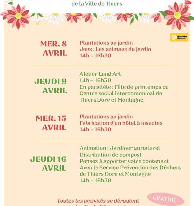Les mercredi 8, jeudi 9, mercredi 15 et jeudi 16 avril, participez à des activités nature organisées par Inserfac – Art et Nature et le service Espaces Verts de la Ville de Thiers.