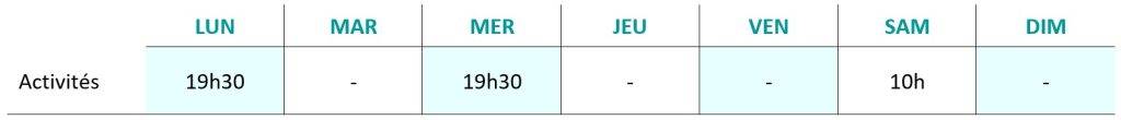 - Mardi et vendredi entre 16h45 et 18h45