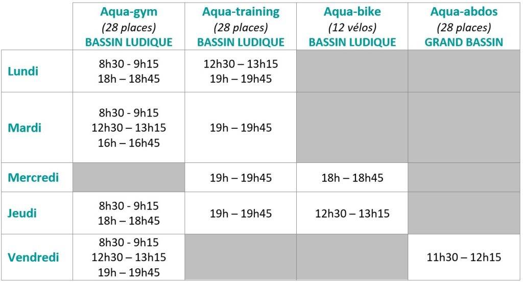 Fermeture du centre aquatique le premier lundi de chaque vacance pour maintenance technique obligatoire.