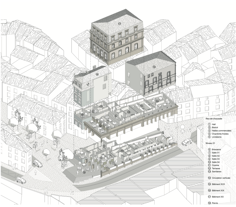 En effet, une fois réhabilité, ce bâtiment accueillera des halles alimentaires, un bistrot, un restaurant et l’Institut de Formation des Aides-Soignants.