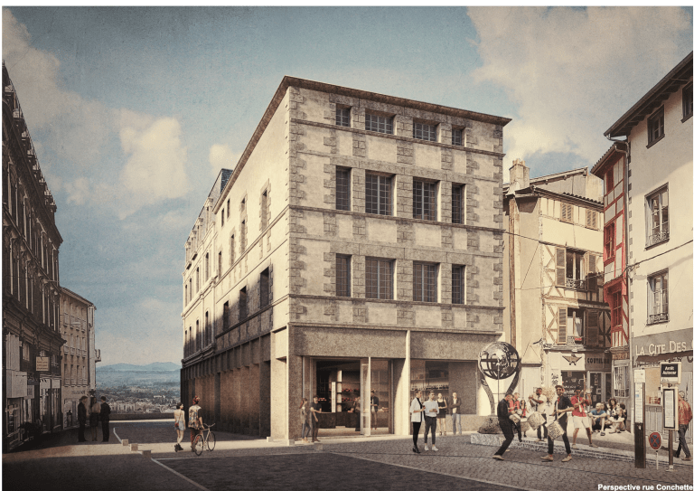 Propriété de la municipalité depuis 20 ans, le bâtiment dit « Défi-Mode » est en fait un ensemble de 3 bâtiments des 17ème, 19ème et 20ème siècles. Bénéficiant d’un emplacement privilégié entre le belvédère sur la chaine des Puys et la place centrale de la ville, ce bâtiment dédié autrefois au commerce sur ces 2 premiers niveaux et aux logements sur ces niveaux supérieurs nécessite une réhabilitation intégrale.