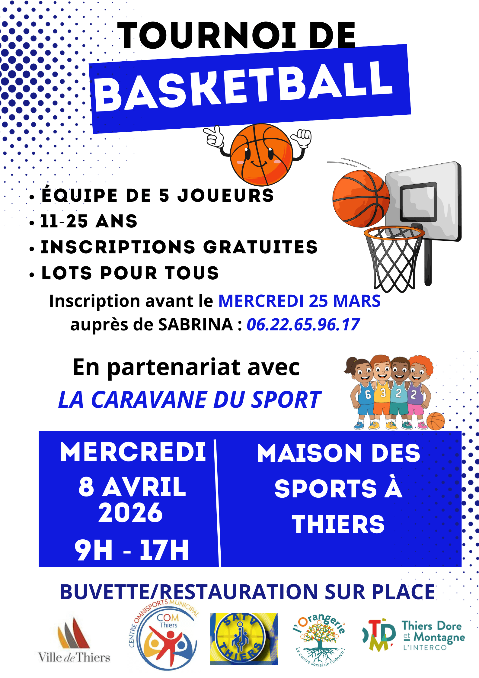 L’Orangerie, le Centre Social de Thiers Dore et Montagne, s’associe à la Caravane du Sport de la Ville de Thiers et au SATV Thiers pour organiser un grand tournoi de basket-ball.