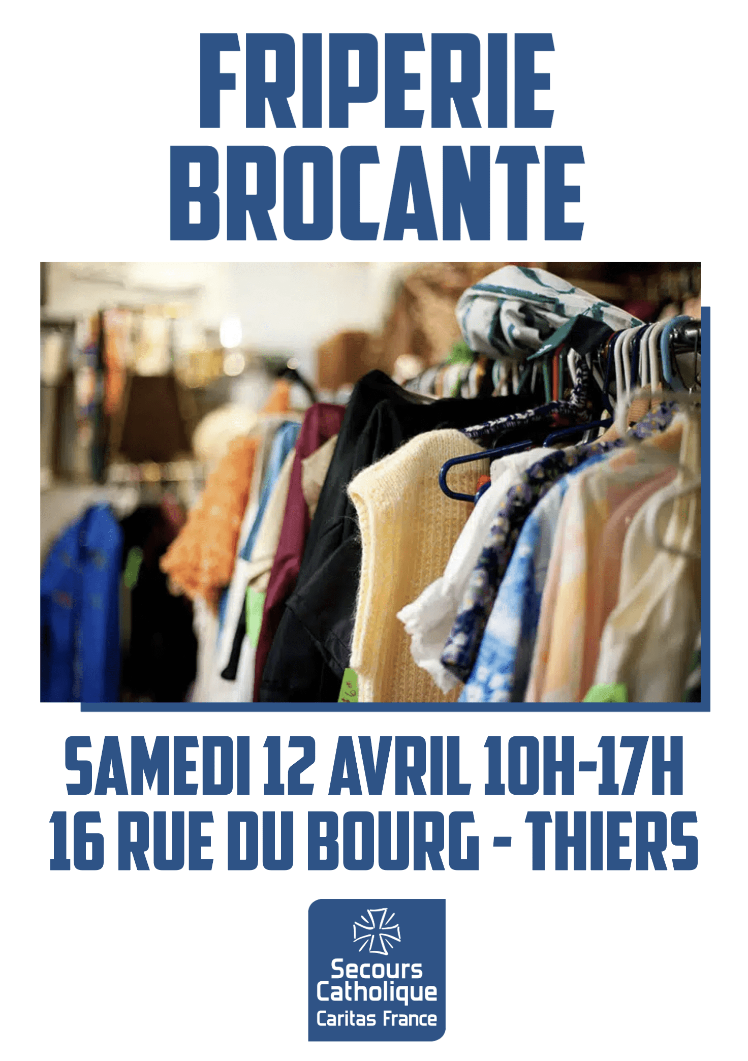 Le Secours catholique de Thiers organise une friperie Brocante. - Samedi 12 avril de 10h à 17h 16 rue du bourg - Thiers