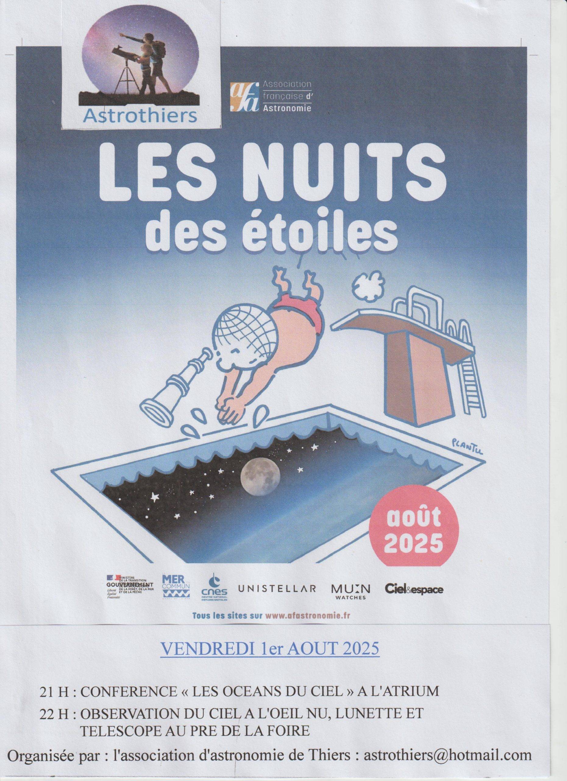 L’association Astrothiers vous propose la nuit des étoiles, vendredi 1er août à partir de 21h.