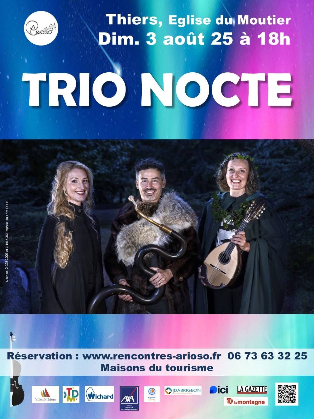 Concert de musique baroque française et anglaise dans le cadre du festival des Rencontres Arioso par le Trio Nocte avec la soprano Fleur Mino, Natalia Korsak à la Mandoline et Sylvain Mino au Serpent, dimanche 3 août à 18h à l’EGLISE SAINT-SYMPHORIEN DU MOUTIER.