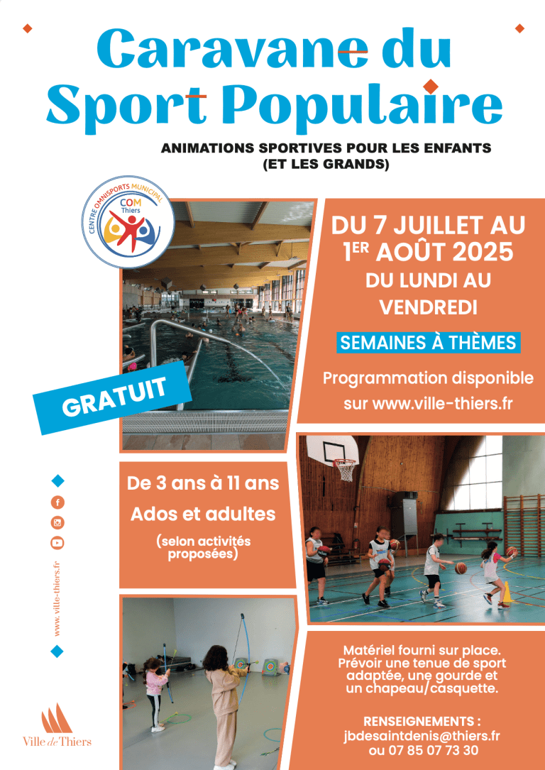 Dans le cadre de sa politique sportive et de la mise en place du Centre Omnisports Municipal, la Ville de Thiers propose des activités sportives aux enfants et adolescents, encadrées par les Educateurs Territoriaux d’Activité Physique et Sportive (ETAPS).