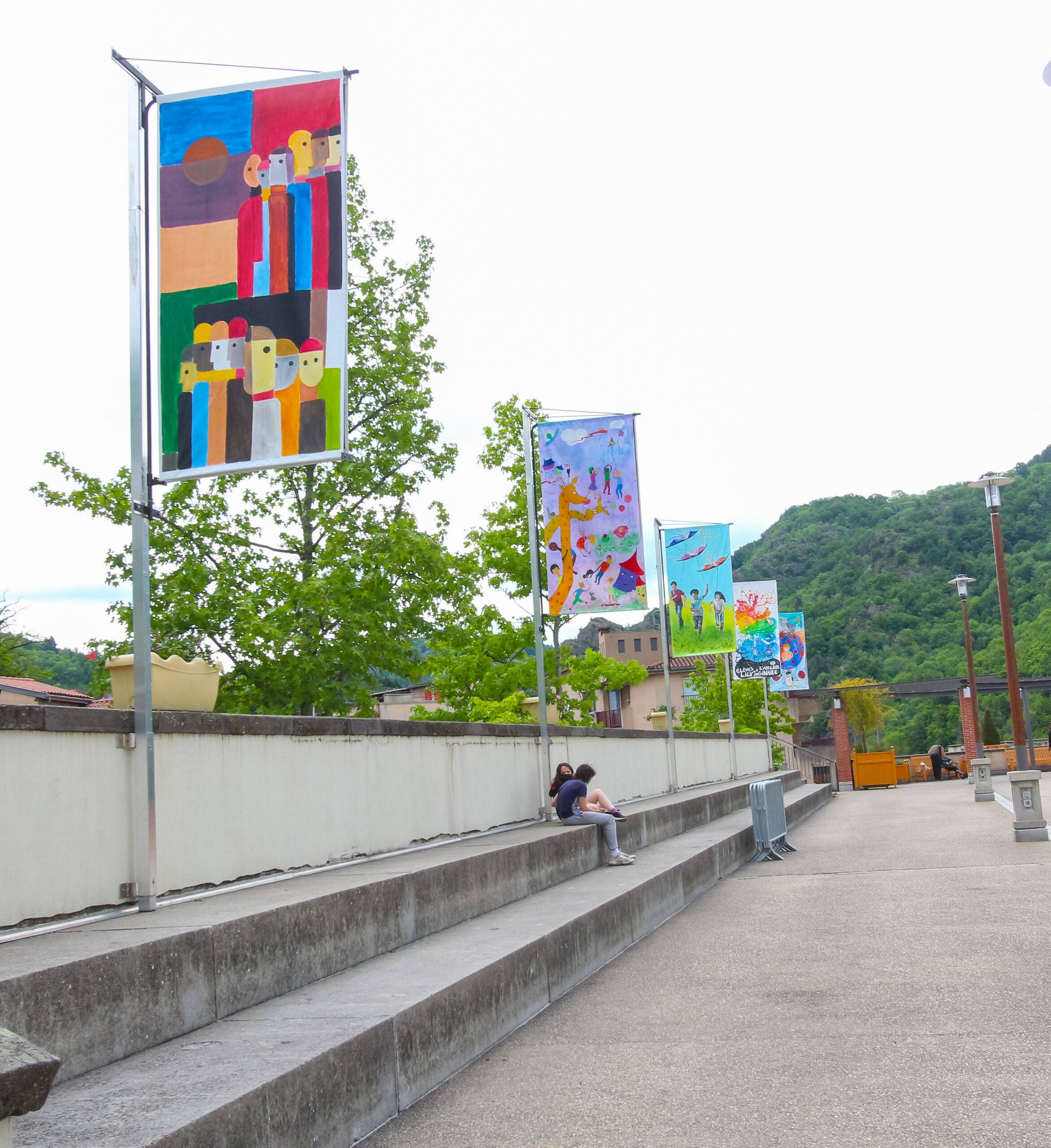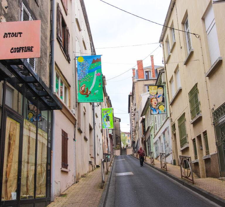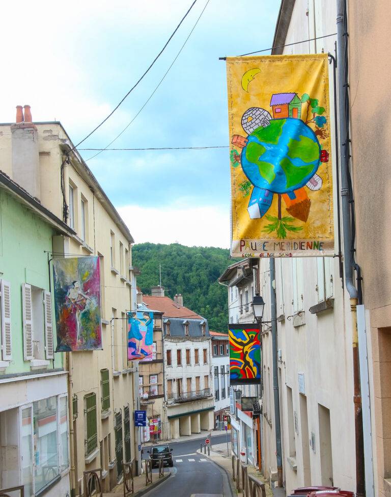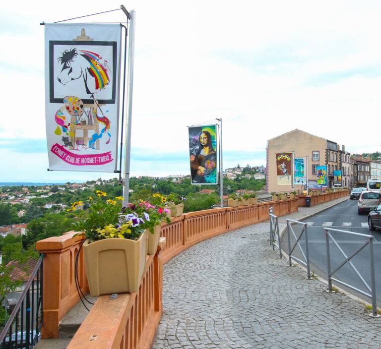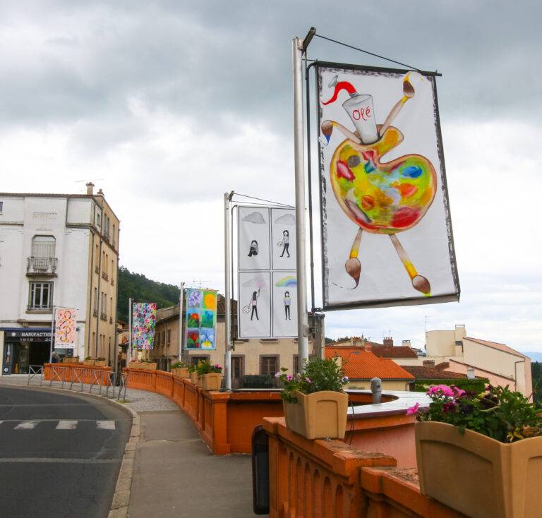 Chaque année, cette grande opération artistique, co-organisée par le collectif ” Artistes ” et les services municipaux, revient durant tout l’été dans les rues thiernoises et les communes voisines. Le principe est simple : des bannières, peintes par des artistes locaux, de toute la France voire d’autres pays, sont affichées dans la ville. Deux thèmes guident l’exposition, en 2023 ont été choisi “Clin d’œil en couleurs” et “Voyage au bout du monde”.